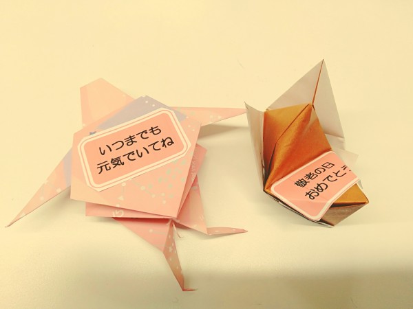 ★私の娘が制作したメッセージ付きの折り紙(鶴と亀)