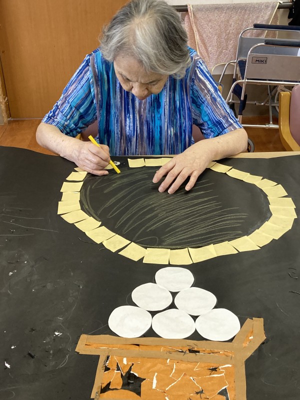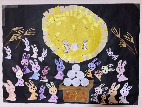 グループホームみんなの家・府中のお月様は満月に輝き、ススキとともに沢山のウサギさんが踊っています(^。^)