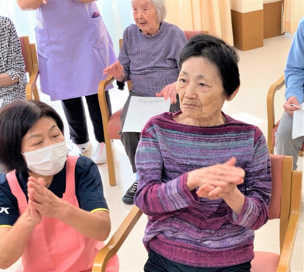 それを見ていた他の入居者様たちも一斉に拍手でお祝いをされました。