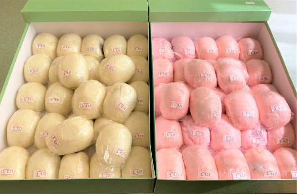 この日のおやつは小判型の大きな紅白まんじゅうでした!