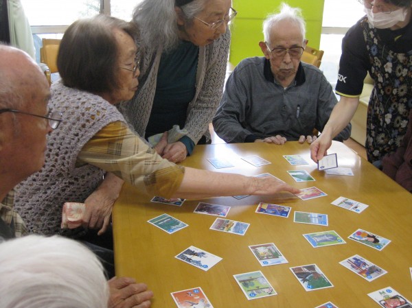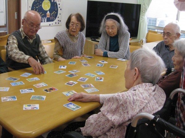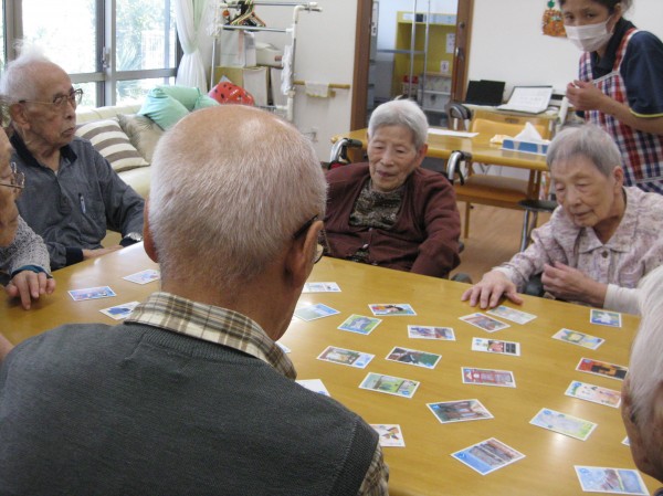 こんにちは!グループホームみんなの家・あきがせの介護ブログです。よろしくお願いいたします。志木かるた遊びで頭の体操を行いました。