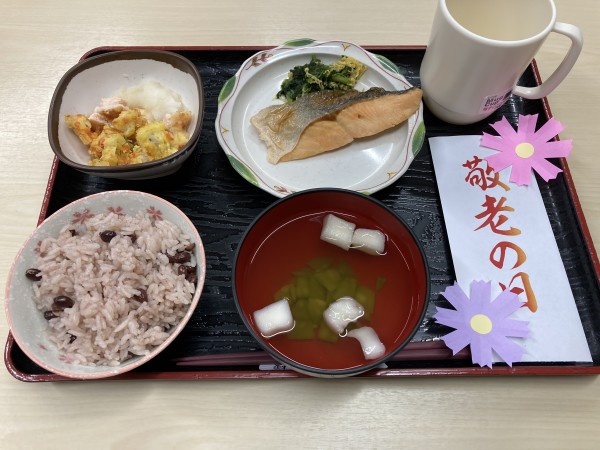 お昼にイベント食でお赤飯、お魚、天ぷらを頂きました。