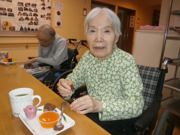 3. 今日のおやつは?ミカンゼリーにご家族様からの差し入れをプラスして召し上がりました。どうもありがとうございます。①