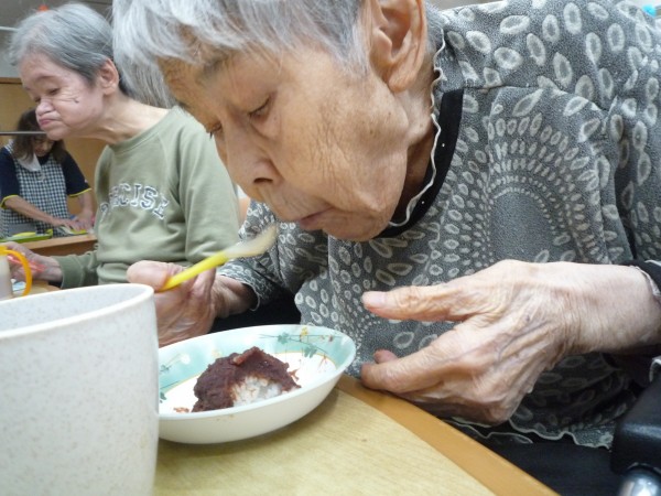 皆で完成した団子を「いただきます。」