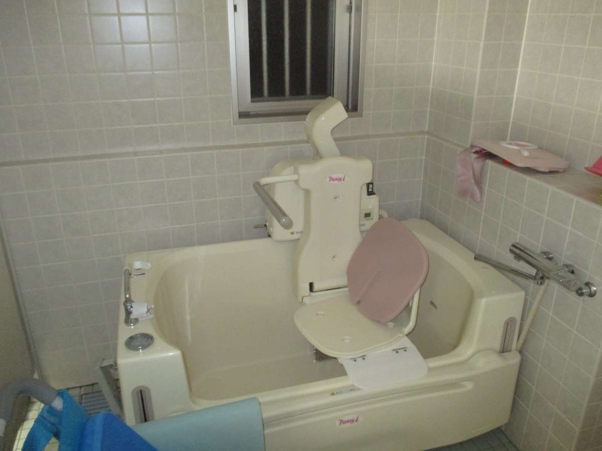 - リフト浴といって座ったまま入れるお風呂です。
