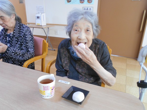 三時には、紅白まんじゅうを召し上がって頂きました