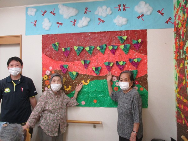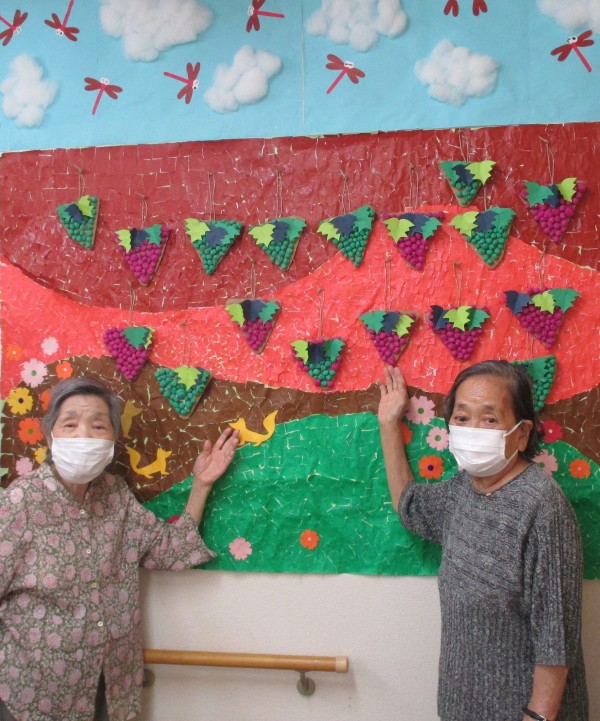 秋の壁飾り ブドウ畑が完成しました!(^^)!