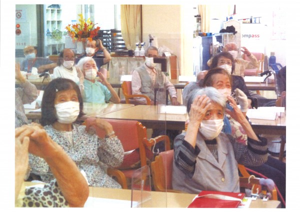 当社オリジナルのNõAエクササイズのご様子です(*^^*) この日は、大画面テレビを使って他のデイサービスと一緒にリモートで行いました。 本社の岡田先生の指導で楽しく運動しました♪ 他のデイサービスの様子も見れましたね(⌒∇⌒)