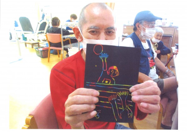 大好評の“削り絵”です(^^♪ 黒い紙を削ると下から綺麗な色がでてきます♪ どんな色が出てくるかわからないのも楽しいですね♡ この日は男性も多く削り絵を楽しんでました(^ω^) 個性的な素敵な作品がたくさん出来ましたね☆