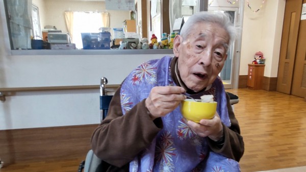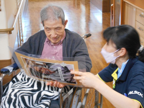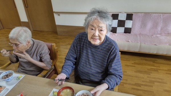 お赤飯やお刺身などを提供し、午後は3階に全員集まりレクリエーションを行い、お祝いのカードを贈呈致しました。