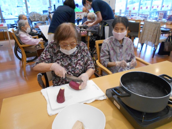 まずは、サツマイモを切って