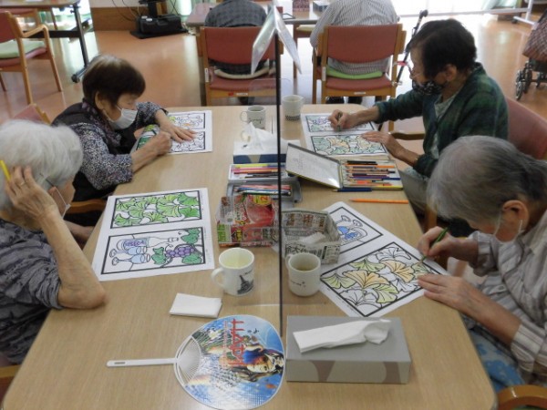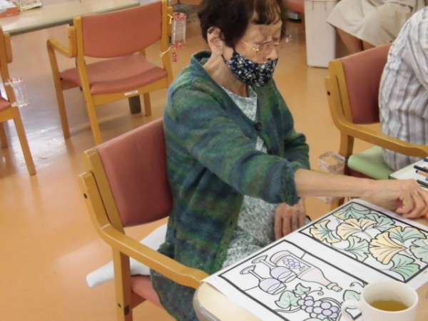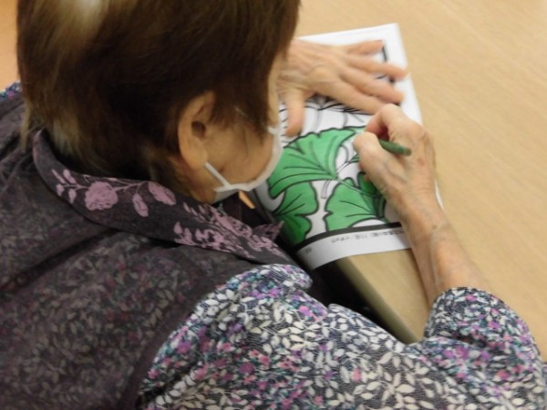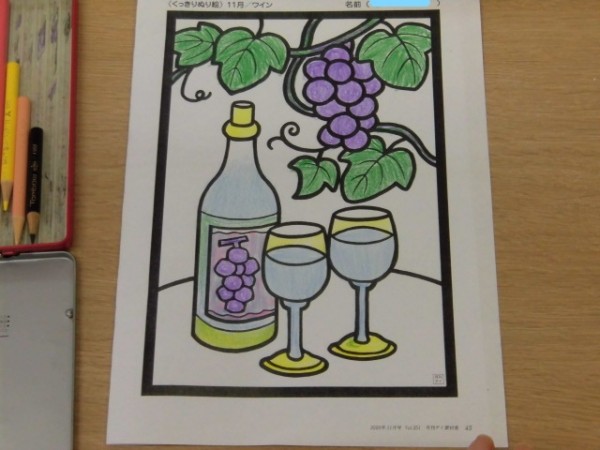 遊蓮田では塗り絵の方が流行っておりまして、今回は「ブドウ酒/イチョウ」の塗り絵を行って行きました。