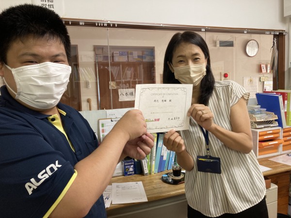 最後は太田講師と岡元職員で反省点や良かった所などお話をされ、無事認定証をいただきました♪