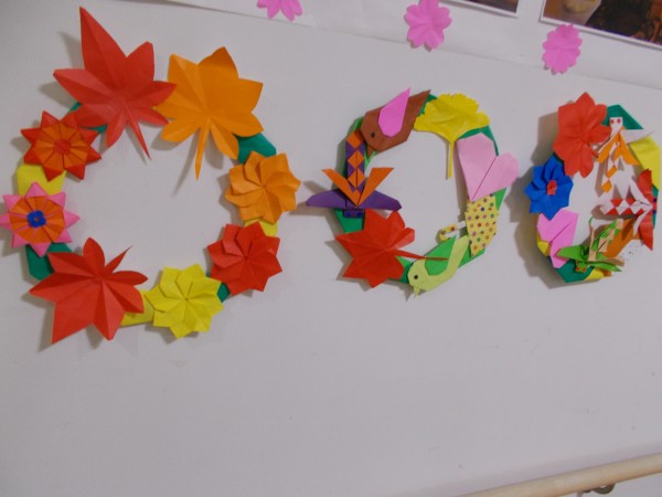 先日、秋にちなんだ切り絵を使ってみなさんとリース作りをしました。