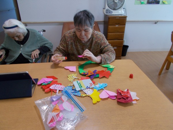 スタッフが作った切り絵や折り紙を選んでいただき、貼っていきます。