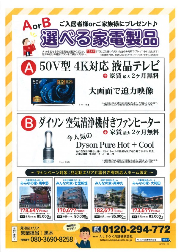 【ALSOK介護株式会社】見沼区介護有料老人ホーム4ホーム限定キャンペーン!ご入居者様募集中!!【選べる家電付きフリートレントキャンペーン!】(*ฅ́˘ฅ̀*)♡