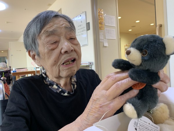 お花と。。可愛い手触りが気持ちいぃ〜〜ぬいぐるみのプレゼントに嬉しそうにされる入居者様。