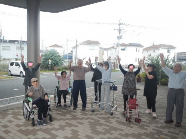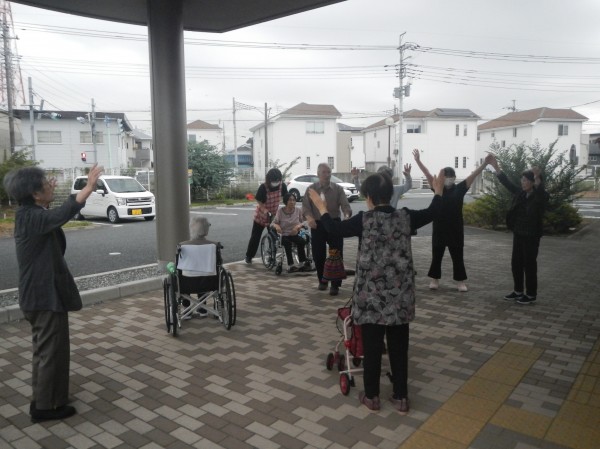 この日も、午後のおやつ前に正面玄関を出て、みんなで元気に体操を行いました。