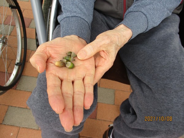 公園のベンチの横には沢山の【どんぐり】が、ありました!