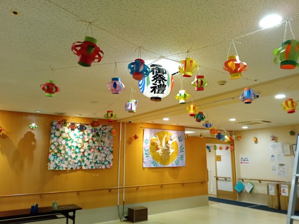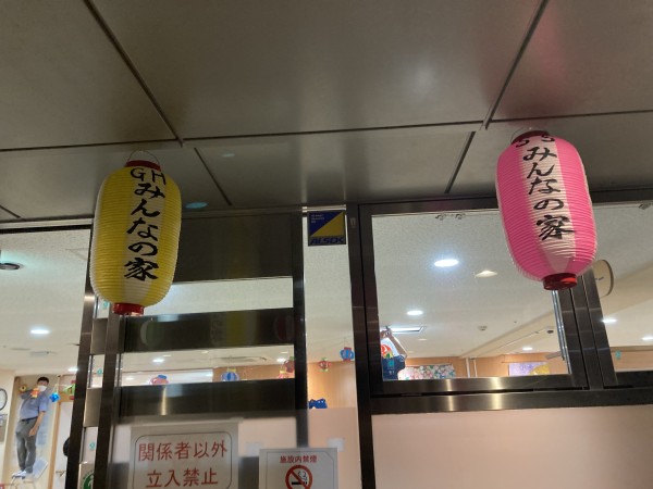 様々なちょうちんを飾り付けして、ご利用者様手書きの看板を設置したら思わず達成感でいっぱいになりました!