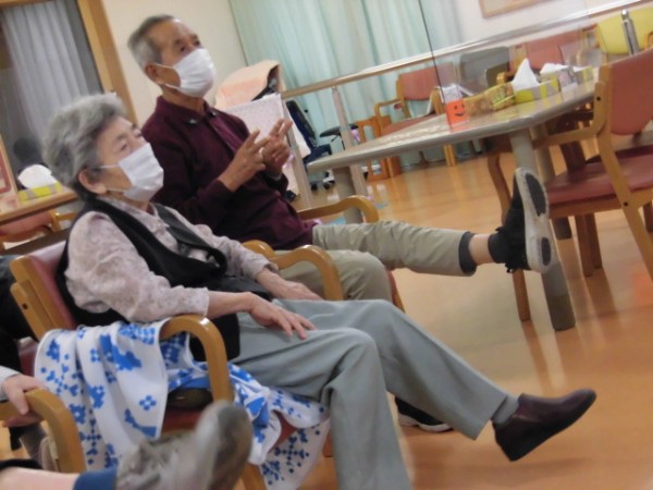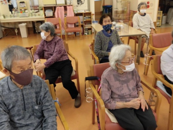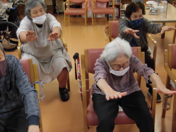 背もたれを気にされる方も、肘を後ろに立てて動かしたり、身体を少し起こして伸ばしたり、腹筋運動も行いました♪
