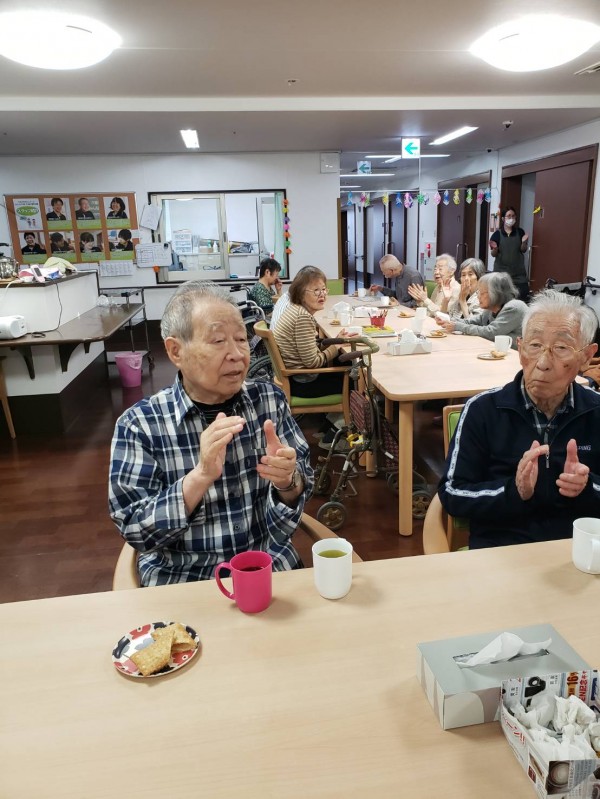 I様は他の入居様が誕生日ソングを歌ってくれた後に立ち上がって丁寧にお礼。