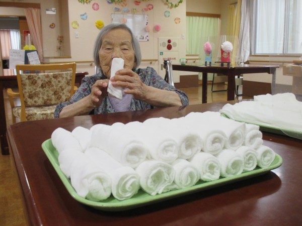 本日は、入居差様がおしぼりを作るのをお手伝いして下さったので、