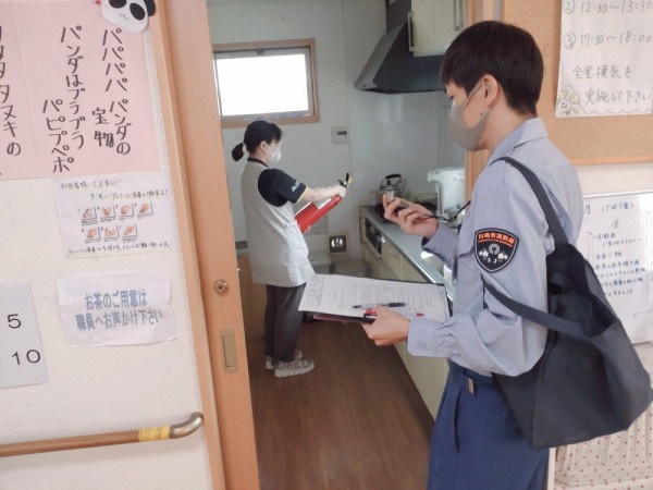 ✿「台所から火が出ています!」利用者様に起きていただき、避難誘導を行います。