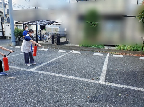 本来ならば地域の方々にもお声をおかけし、一緒に訓練に参加していただいているのですが、現在の状況を踏まえ、消防署の職員さんにのみご参加をお願いしました。