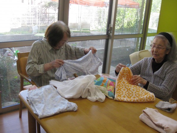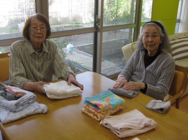 楽しくおしゃべりしながら洗濯物を畳まれているご様子です。『これ、畳むとお給金がでるかしら・・・??』( ^ω^)と和やかなひと時でした。