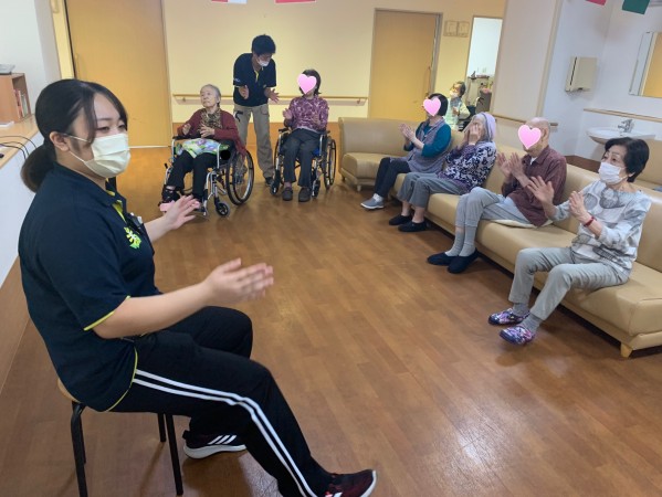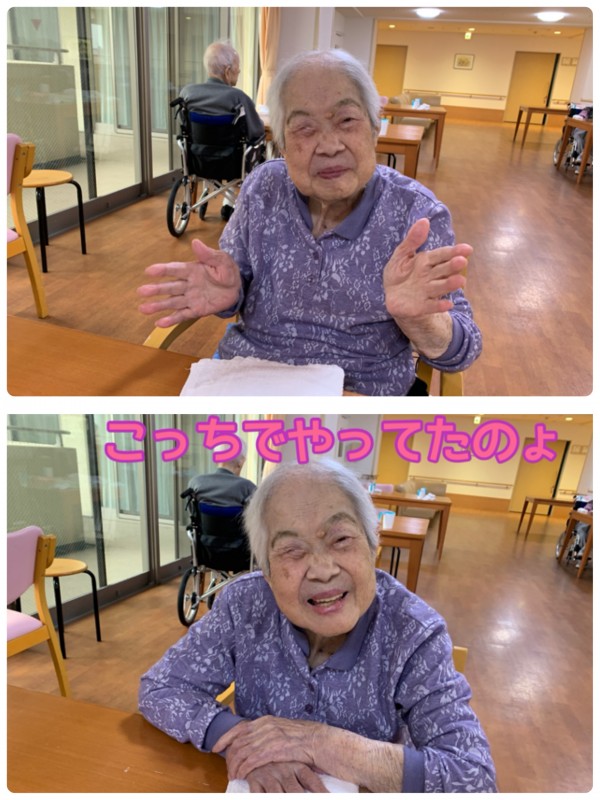 入居者様は、お上手ですね!と、入居者様を見ながらマイムマイム。