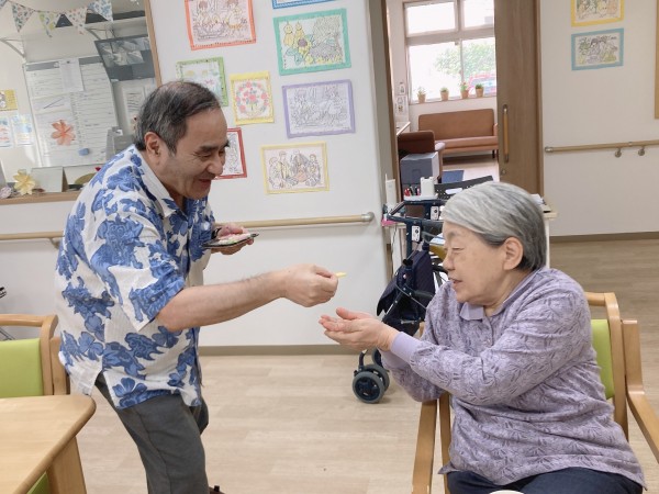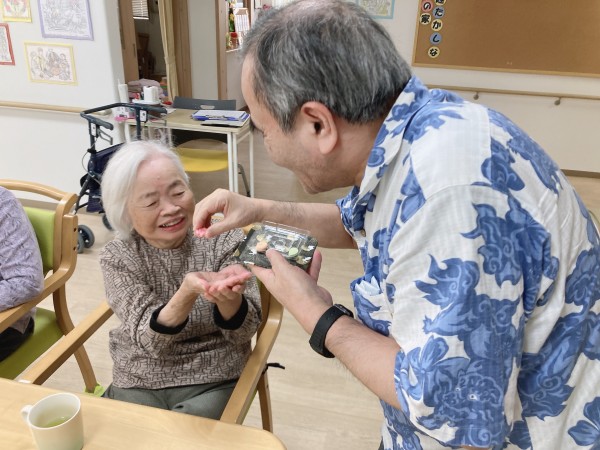 お相手がお菓子をもらって嬉しそうに笑うと、