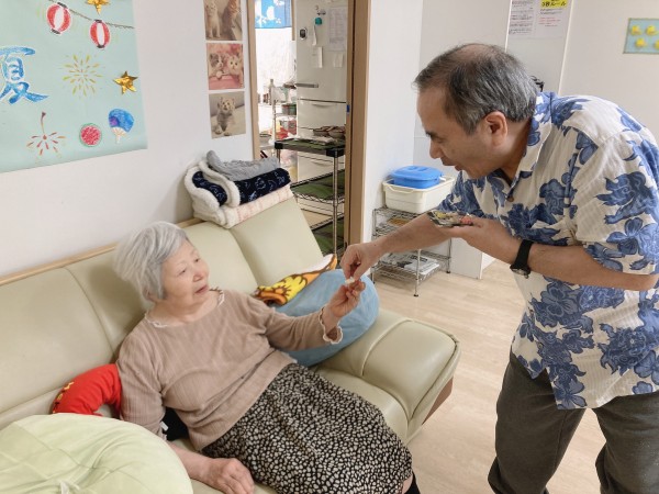 ご家族様が来訪され、玄関先でちらっとお会いになられたご入居者様。