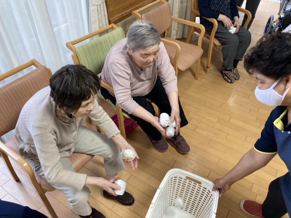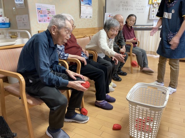 コロナ禍ということもあり、まだまだ声を出して観戦してはいけないと思いつつ、『風船バレー』や『玉入れ』『からだじゃんけん勝ち抜き戦』などの競技種目を、職員もご利用者様も応援に熱が入り、ついつい大きな声で、はしゃいで声を上げていました(笑)