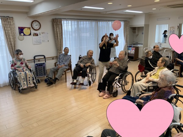 ①風船みんなでつなげて!(風船バレー)