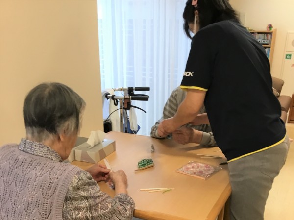 先日レクリエーションとしてミニ扇子づくりを行いましたので、