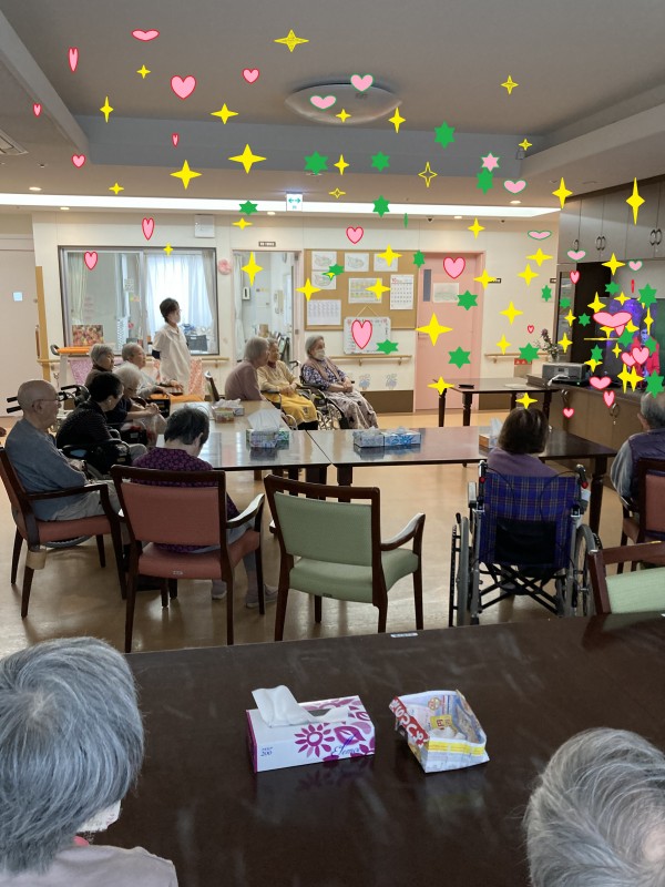 今回は「男はつらいよ」と「綾小路きみまろ」をフロアを分けて上映しました。利用者様には見たい映画を選んで頂き、見たい映画を上映しているフロアでご覧いただきました。「男はつらいよ」は特に懐かしいですね。本格的にしたいと思い、皆様にお集まりいただくホールの証明を暗くし、いつもよりも少し音量を上げてお楽しみ頂きました。今回は上記2作品の中から選んで頂きましたが、今後も皆様の見たい映画のリクエストを募集していきたいと思います