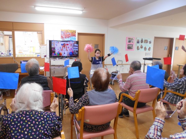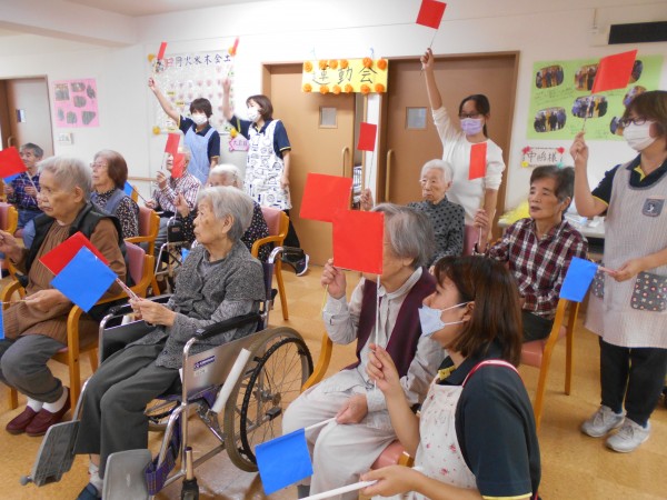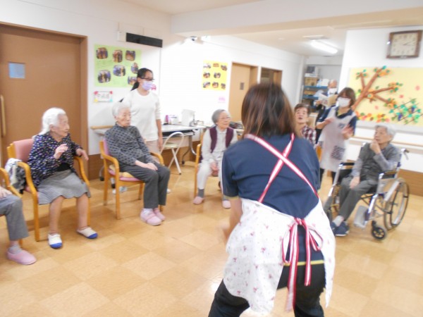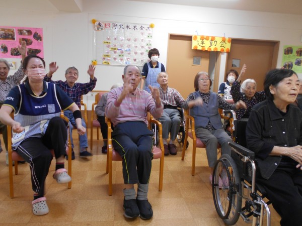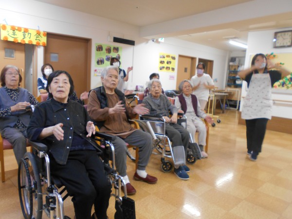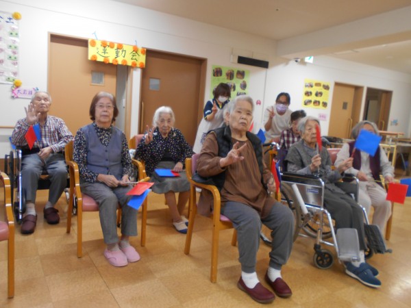 フーセンバレー、 玉入れ、 からだジャンケン、旗上げ、フォークダンス(マイムマイム)を楽しみました。