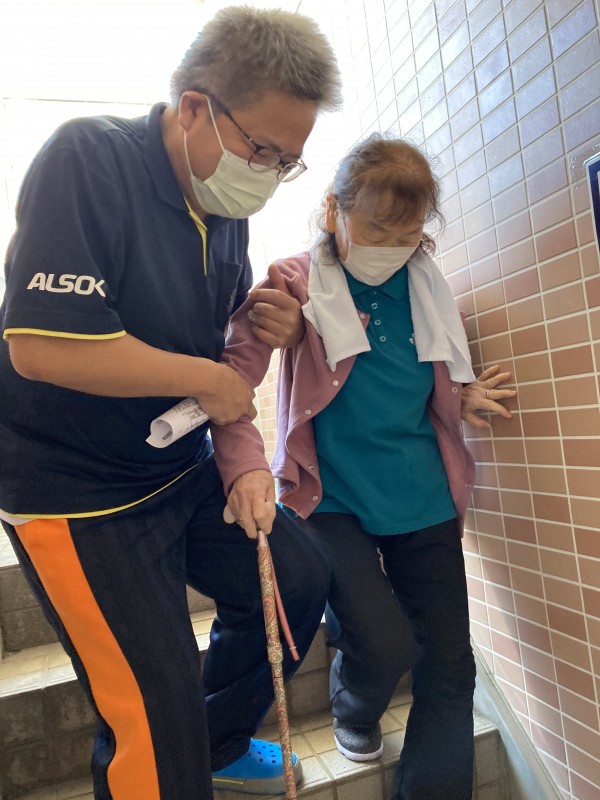 2階と3階の皆さんは慎重に非常階段を降りていきます。車椅子の方はエレベーターを使い避難完了です。