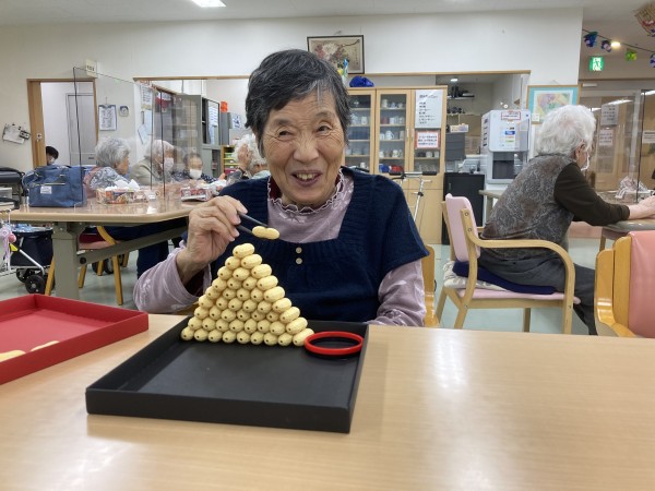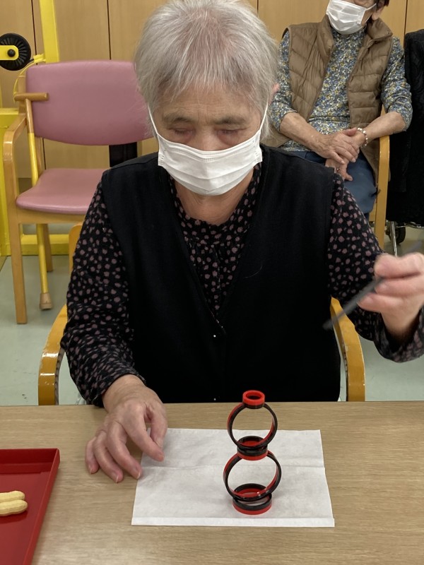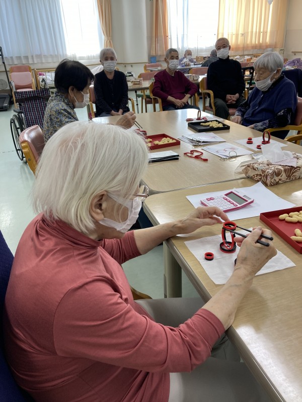 レクリエーションタイムに”箸技”を使って集中力とバランス感覚を