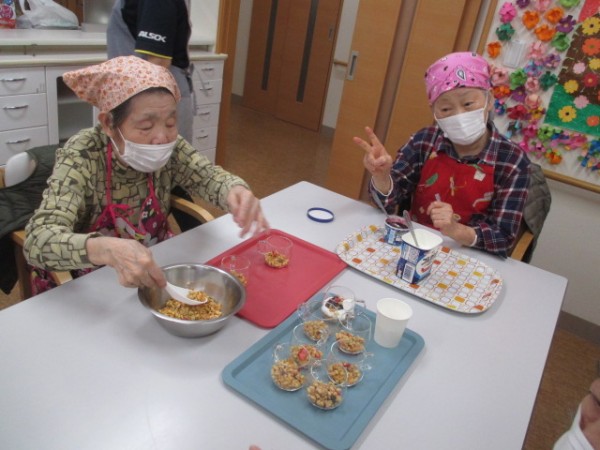 今日のおやつはスペシャルフルーツパフェ作っちゃいました!(^^)!