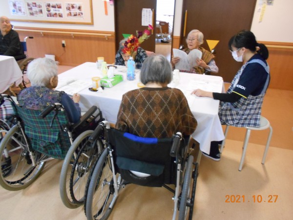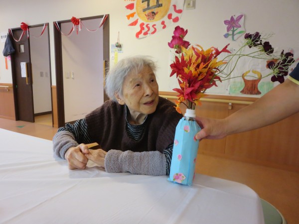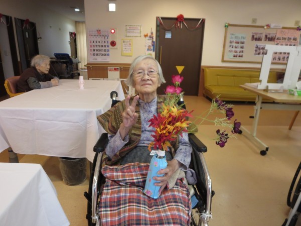 今日は、午後から秋のお茶会を行い、職員が購入した秋の花