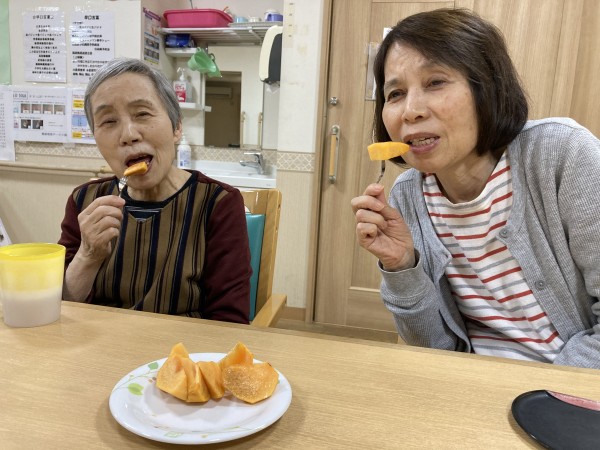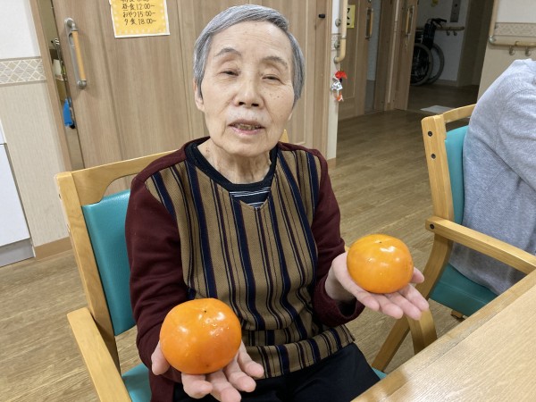 ご家族様より柿が届けられ、ご入居者様に召し上がっていただきました。