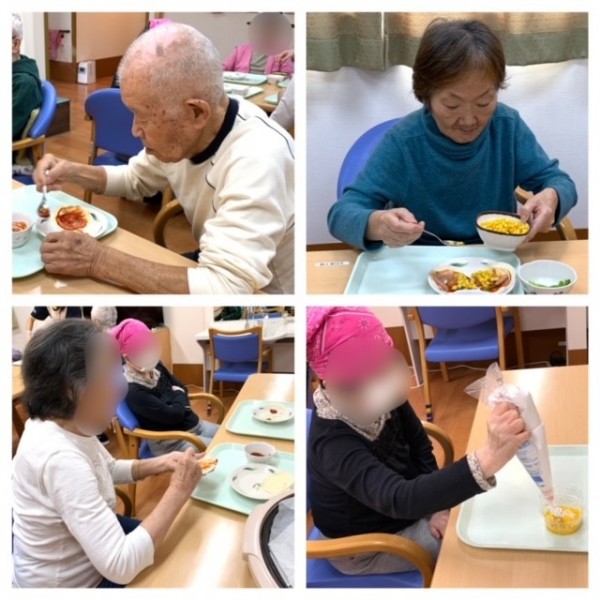 前回は「栗ようかん」でしたが、今回はとってもおしゃれな、職員手作りの「かぼちゃプリン~生クリームを添えて~」でした(笑)