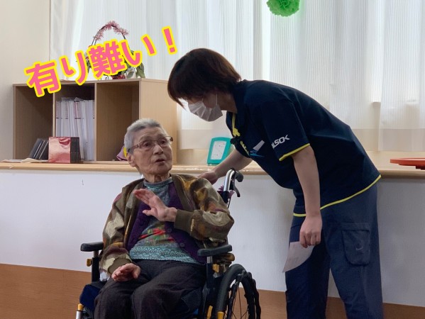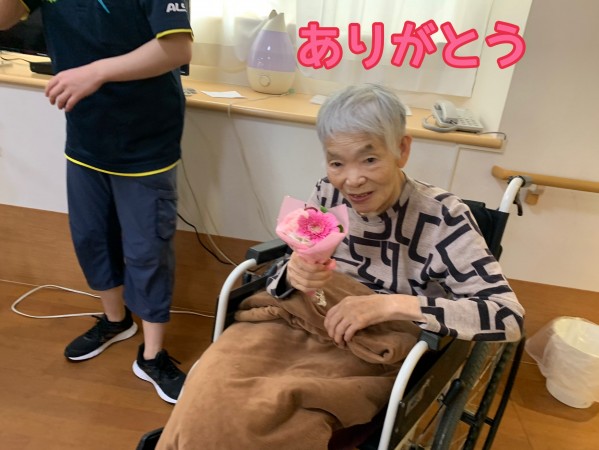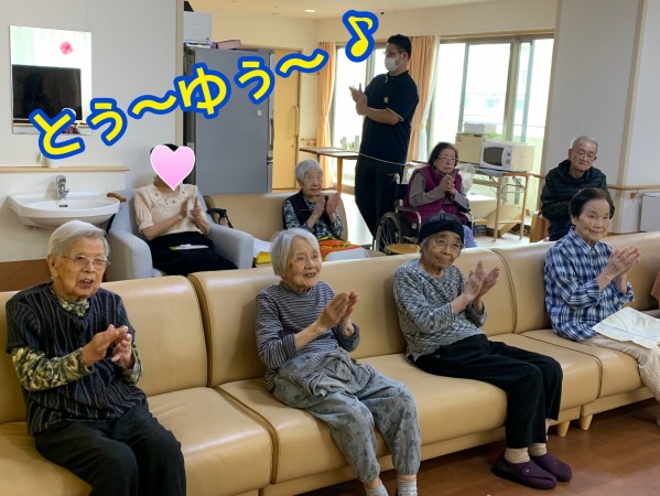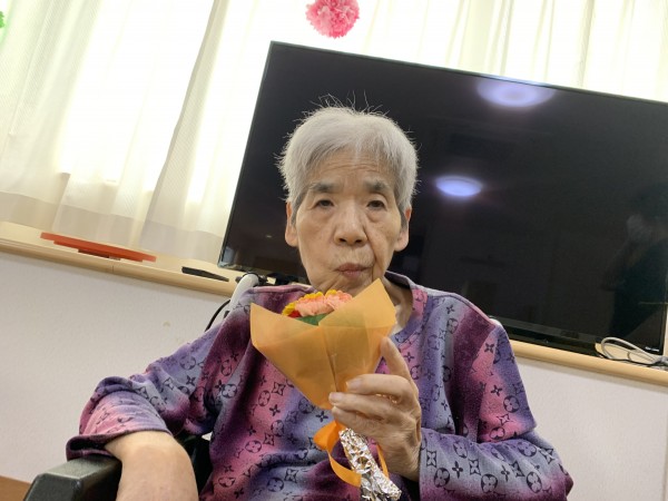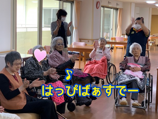 入居者様と職員で、お祝いさせていただきました。