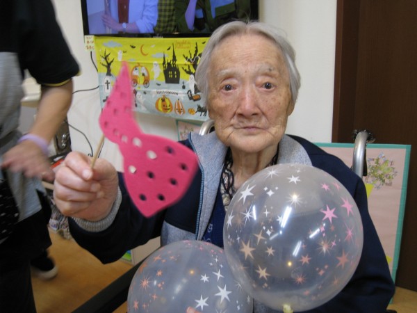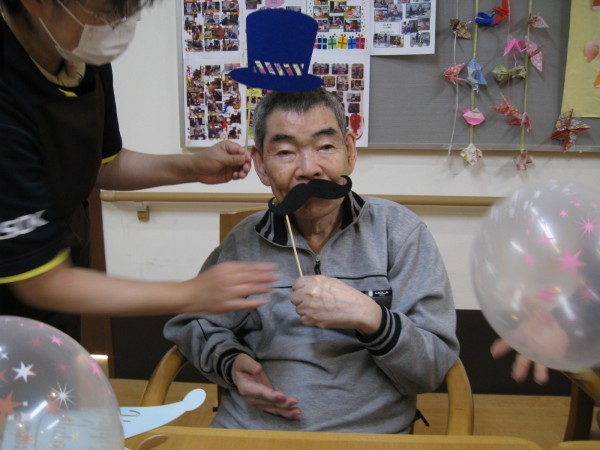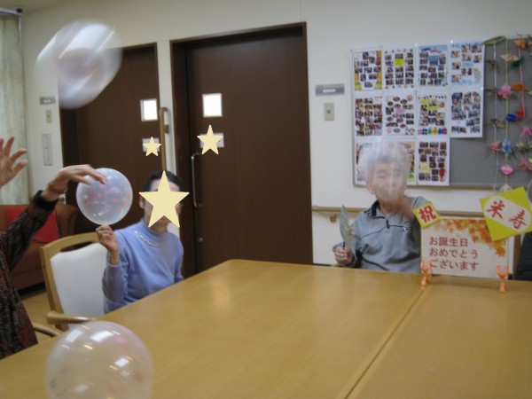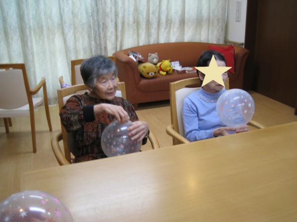 前夜に居室担当さんが袋いっぱいにせっせと膨らませていました。