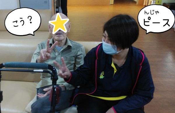 ピース(^_^)v』と、ホーム長。