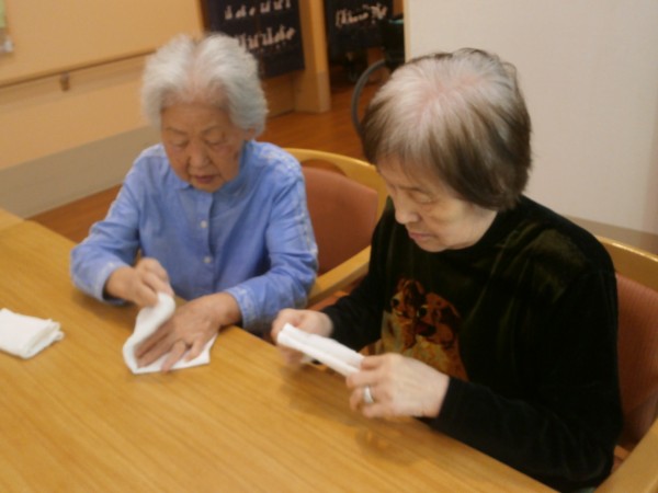 こちらは乾いたおしぼりを2人で協力してたたんでくださります♪