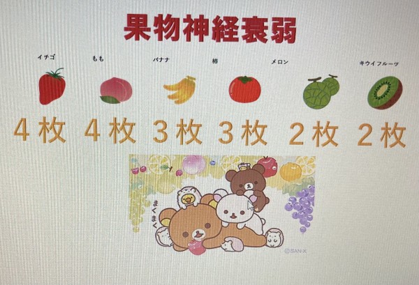 おにぎりの具材を揃えるおにぎり神経衰弱も人気ゲームですが今回は果物神経衰弱で盛り上がりました♬