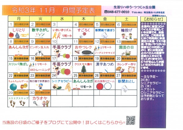 11月のレクリエーションカレンダー♡